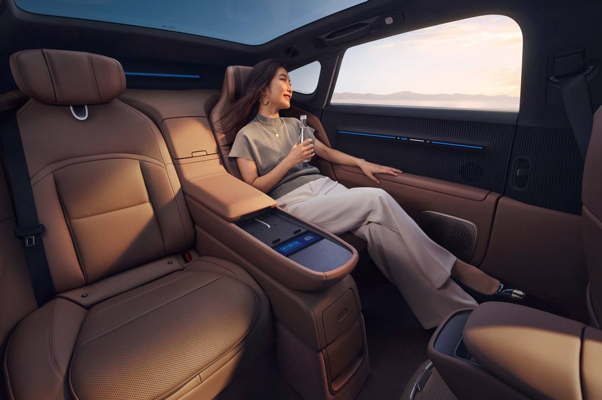 设计层面,新车延续“未来美学”设计语言,新增“曦金灰”车身配色与“岩棕”内饰方案,搭配天然桦木饰板,营造出兼具温度与科技感的座舱氛围。无后舷窗设计配合超清电子内后视镜,不仅提升车辆辨识度与私密性,更优化了后方视野。其艺术化设计成果已被博物馆收藏,彰显原创设计水准。