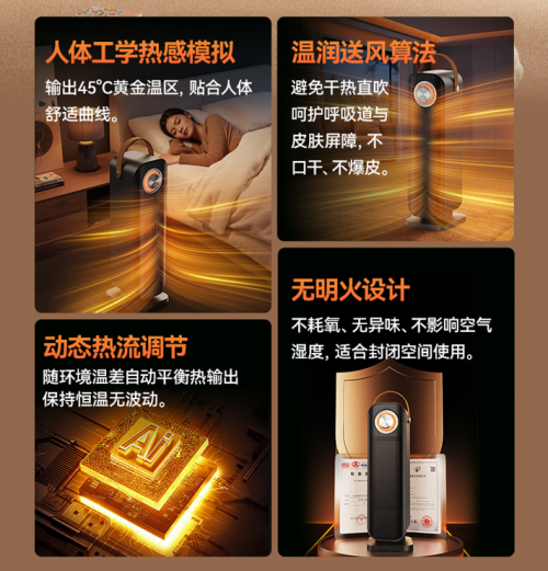 搭配无明火控温架构,不耗氧、无异味、不破坏空气湿度,就算是卧室、书房、办公室等封闭空间,也能放心用,老人、小孩、呼吸敏感人群长时间取暖都不怕,直接告别传统暖风机“热风猛如刀”的折磨,构建柔热不燥的全域温暖环境,让家里每一刻都能舒适呼吸、温润护肌。