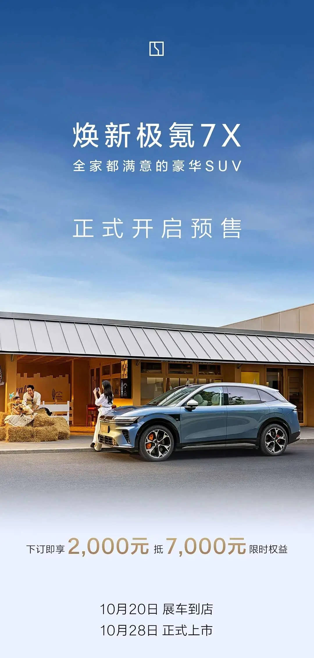 近日,极氪汽车宣布新款极氪7X正式启动预售,并将于10月28日正式上市交付。此次预售共推出三款车型,分别为75度后驱Max版、103度后驱Max版和103度四驱Ultra版。消费者现在下订即可享受2000元抵7000元的限时优惠权益,同时展车已陆续到店供消费者体验。