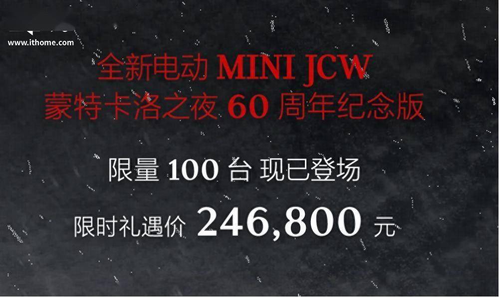 为致敬上世纪60年代经典Mini在蒙特卡洛拉力赛的夺冠传奇,MINI品牌近日推出全新电动MINI JCW蒙特卡洛之夜60周年纪念版车型。这款限量100台的特别版车型以24.68万元的限时礼遇价开启销售,通过一系列专属设计元素重现历史荣光。