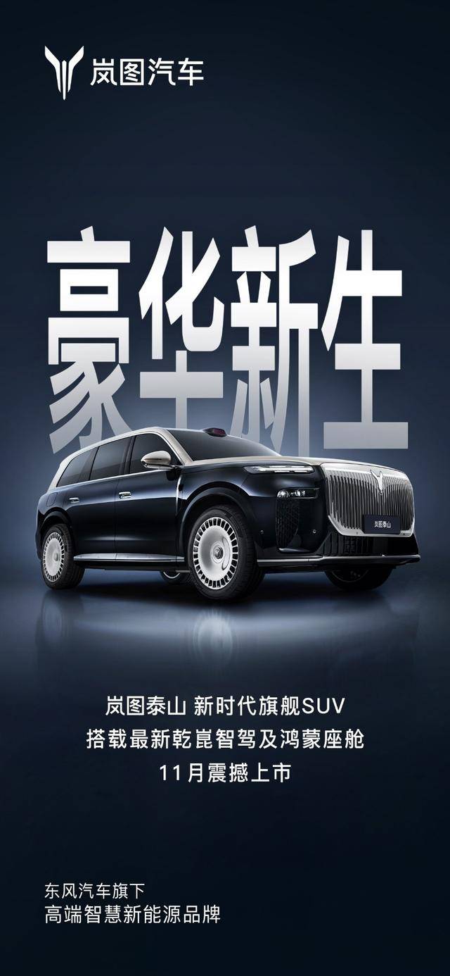 岚图汽车即将于11月推出其全新旗舰SUV——岚图泰山,这款车型以多项行业领先技术为核心,旨在重新定义全尺寸豪华SUV的市场标准。作为华系品牌在高端领域的又一力作,岚图泰山通过底盘、动力、智能驾驶及设计四大维度的突破,展现了技术实力与中式美学的深度融合。