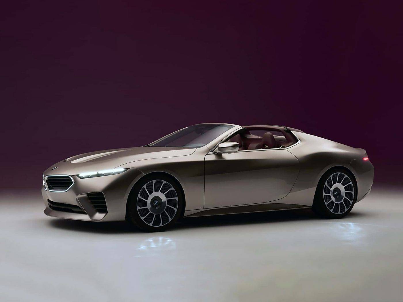 从外观设计来看,Skytop概念车以双门敞篷造型亮相,车身线条流畅且修长,尽显优雅气质。车头部分采用极具运动感的sharknose风格设计,向前突出的造型赋予车辆强烈的视觉冲击力。标志性的双肾格栅采用宝马最新设计语言,两侧LED大灯组造型独特,辨识度极高。发动机舱盖中部两条隆起的筋线,进一步强化了车辆的力量感。车身侧面,隐藏式门把手与腰线完美融合,呈现出简洁而动感的视觉效果。车尾部分,狭长且优雅的长尾设计搭配小鸭尾,尾灯采用犀利的细长造型,同时配备双边共两出式排气布局,为整车增添了浓郁的运动氛围。