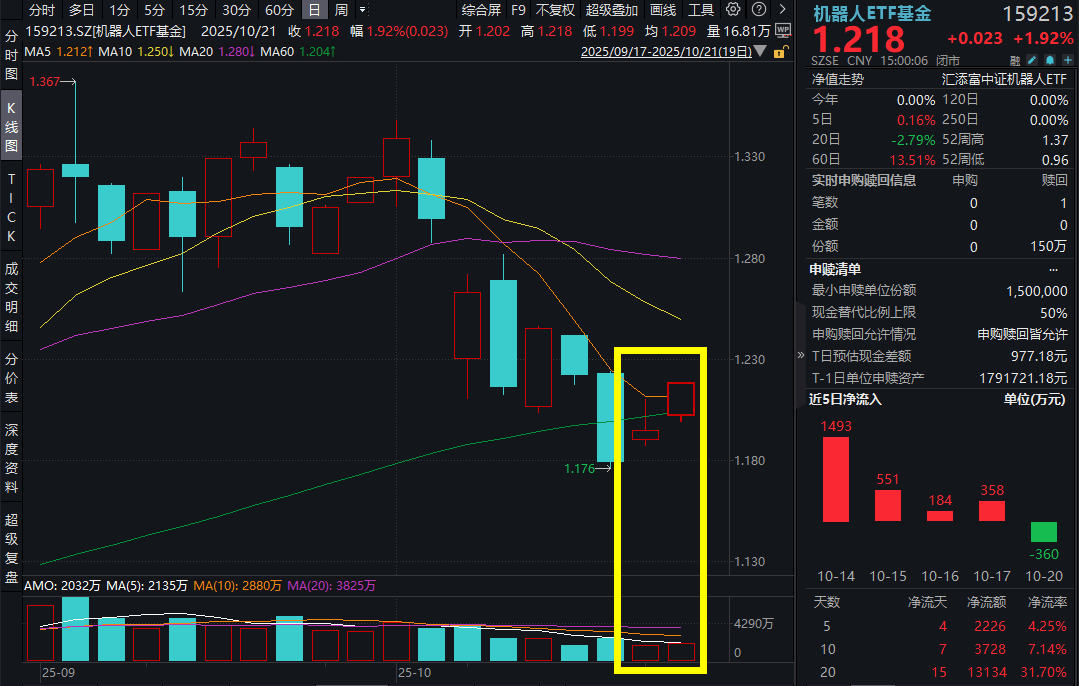 A股市场今日迎来全面反弹,两市逾4600只个股飘红,沪指收复3900点整数关口。科技板块成为领涨主力,其中机器人ETF基金(159213)表现亮眼,全天维持高位运行,最终收涨1.92%,实现两连阳走势。