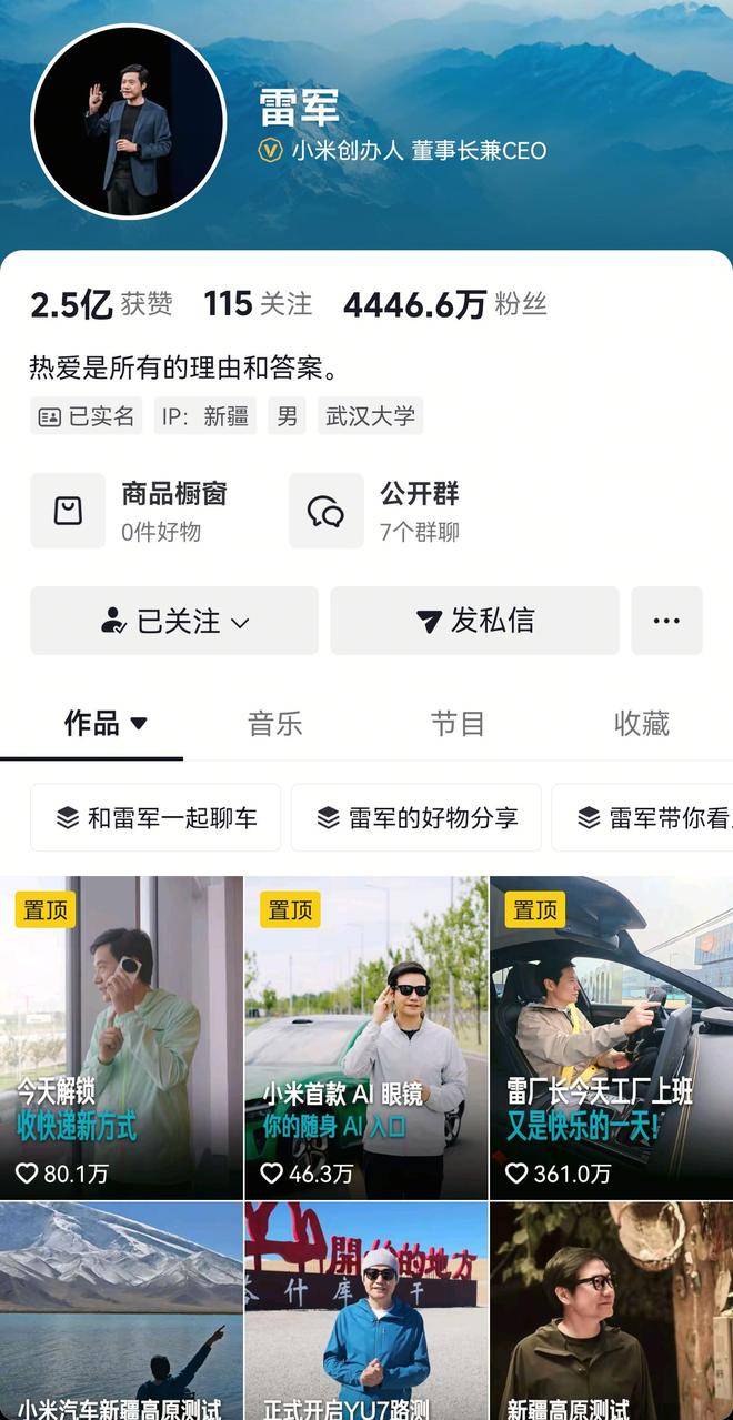 近日,科技领域知名人物雷军的抖音账号动态引发关注。细心的网友发现,其账号已连续十天未更新内容。