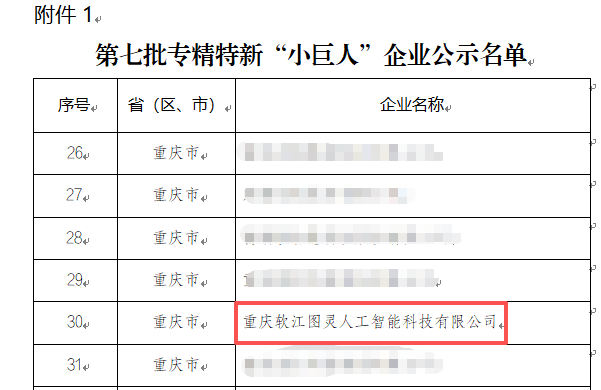 近日,工业和信息化部公示了2025年新一批国家级专精特新“小巨人”企业名单,重庆软江图灵人工智能科技有限公司(以下简称“软江图灵”)成功入选。这一称号的获得,不仅是对软江图灵多年来坚持技术创新、深耕人工智能行业成果的权威认可,更标志着其在推动产业数字化、智能化升级方面的硬核实力获得了国家的肯定。