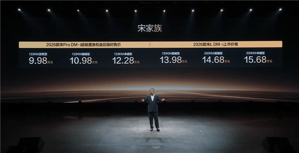 今日晚间,比亚迪秦宋2026款车型上市发布会正式举行,宋Pro DM-i与宋L DM-i家族同步推出新款车型,为消费者带来更多选择。