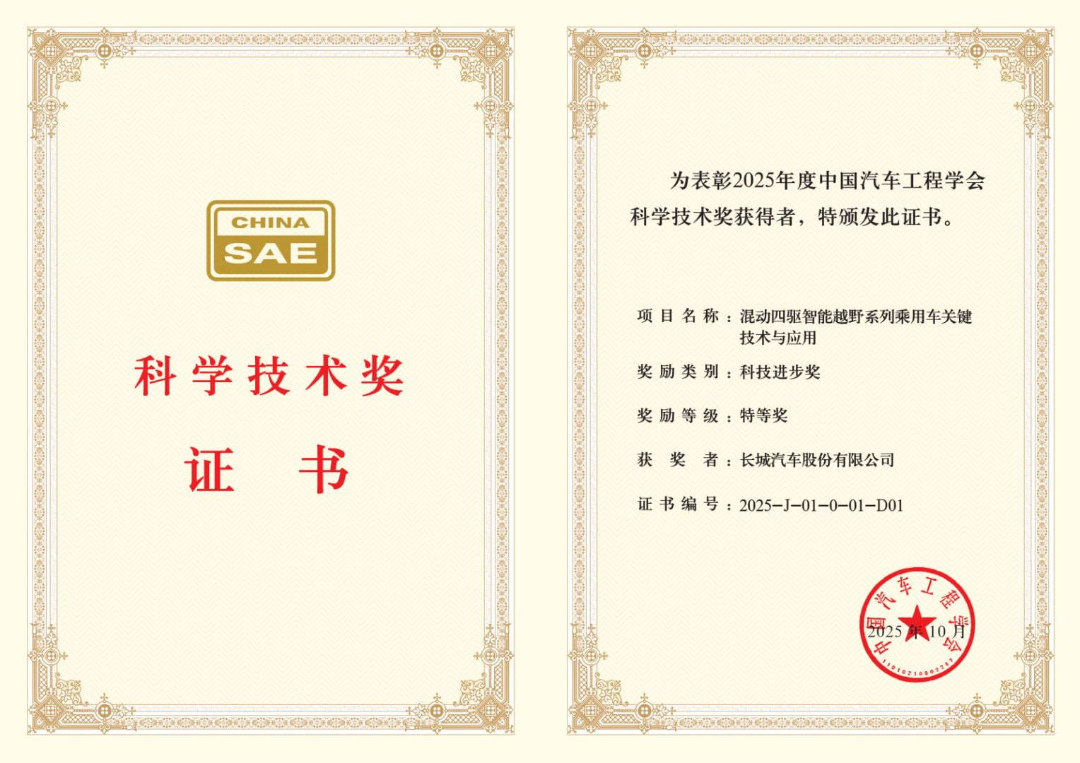 近日,长城汽车凭借《混动四驱智能越野系列乘用车关键技术与应用》项目,斩获中国汽车工程学会科学技术奖特等奖。这一奖项的授予,标志着长城汽车在混动技术领域的创新成果获得权威认可,也是该奖项设立30余年来首次将特等奖授予混动技术。