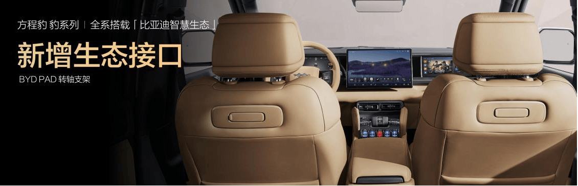 比亚迪智慧生态的融入,为两款车型增添了更多科技温度。豹5长续航版与豹8大五座版上市即搭载钛7同款生态系统,用户可通过比亚迪智慧物联APP,以语音指令控制全车生态设备,彻底告别繁琐的手动操作。车内前排座椅新增生态接口,支持BYD Pad扩展使用,未来还将接入更多生态产品,构建智慧互联的无限可能。