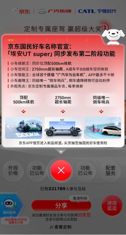 京东与广汽集团、宁德时代联手打造的“国民好车”项目迎来新进展。近日,京东APP商品详情页更新显示,该项目首款车型正式命名为“埃安UT super”,并详细公布了续航、空间、智能配置及安全性能四大核心亮点。