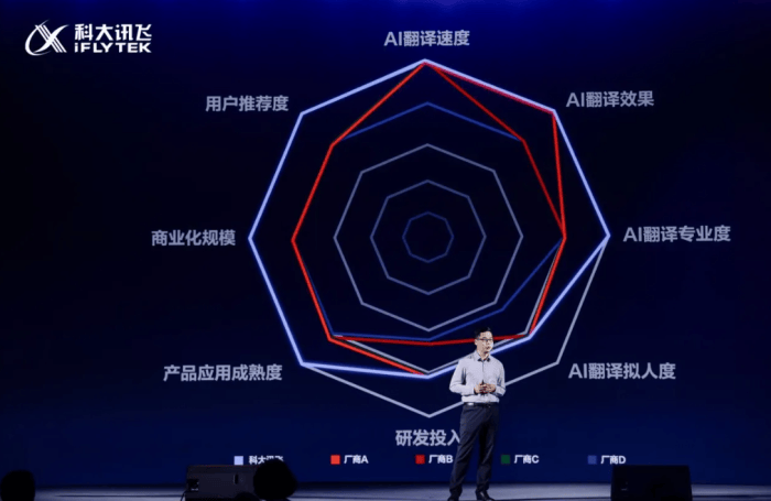 同步亮相的讯飞双屏翻译机2.0同样亮点纷呈。基于星火办公大模型的深度整合,设备新增讲话人分离与智能会议纪要功能,可自动识别不同发言者并生成结构化会议记录,彻底解决了跨国会议中信息整理耗时、易遗漏的痛点。IDC最新报告显示,科大讯飞在AI翻译技术的准确性、响应速度、场景适配等8大核心维度中均位列第一,其中6项指标获得满分评价。