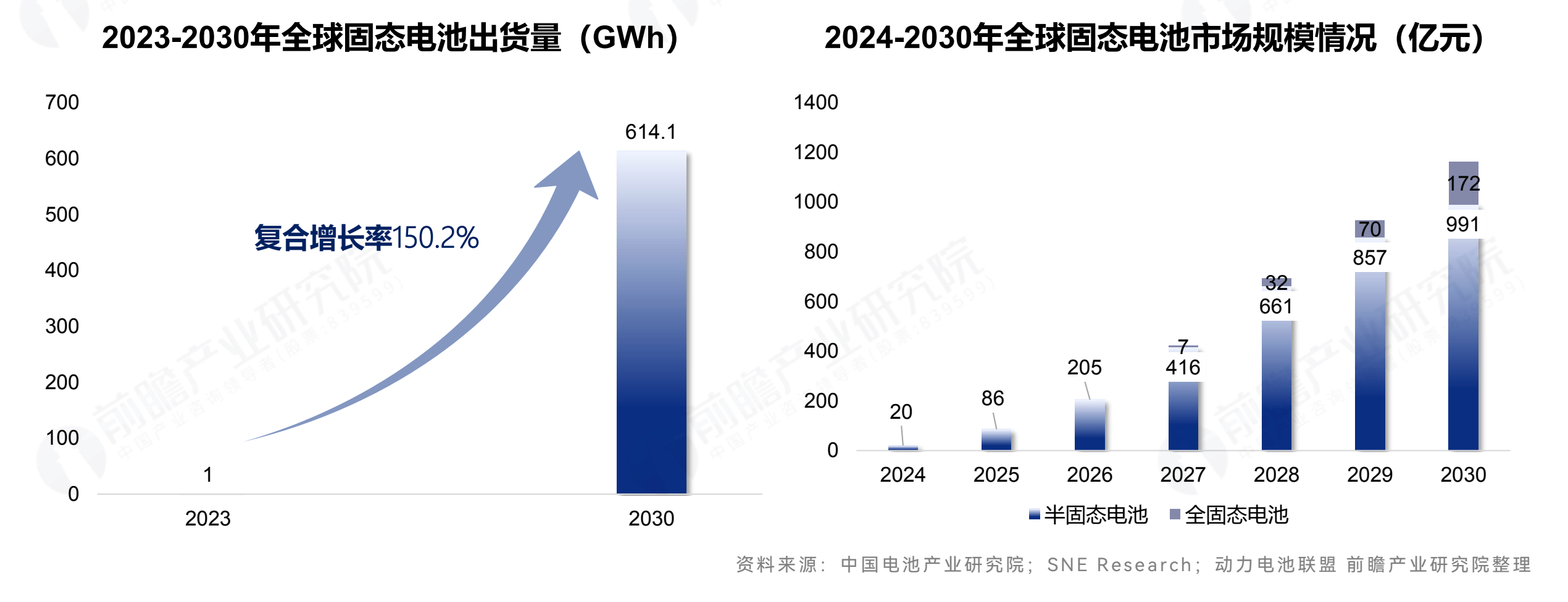 当前,固态电池市场正迎来爆发式增长。根据《2025年固态电池高质量发展蓝皮书》预测,到2030年全球固态电池出货量将达614.1GWh,市场规模突破千亿元,其中半固态电池占比约85%。凭借高比能量与高安全性的双重优势,固态电池被视为推动新能源产业升级的关键技术。然而,全固态电池的商业化仍面临挑战——高成本、技术成熟度不足、产业链配套不完善等问题,导致其大规模量产时间预计在2030年之后。相比之下,半固态电池通过保留5%-10%的液态电解液,在保障安全性的同时维持了较高能量密度,且兼容现有生产设备,成为行业向全固态过渡的现实选择。