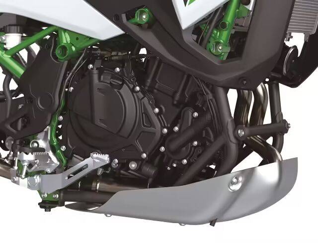 悬挂系统采用KYB 43mm倒置前叉,后部配备预载可调的Uni-Trak连杆式单避震。860mm的座高设定兼顾了站立骑行姿态,整车重量虽未公布,但通过结构优化已实现显著减重。车头设计融入川崎最新家族语言,简洁干练的造型与ADV定位高度契合。