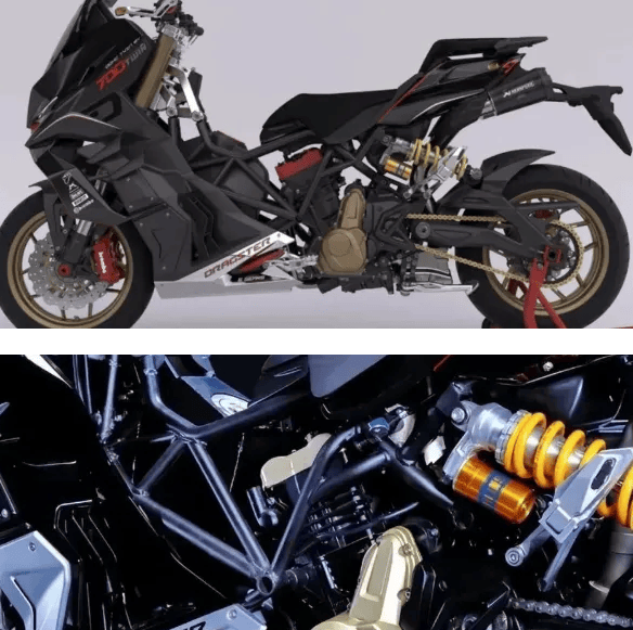 钱江品牌此次带来两款重磅产品。450cc运动踏板车配备直列双缸发动机与链条传动系统,自动挡设计让操作更简便。其犀利的前脸造型与丰满的车身线条,彰显运动气质。另一款700cc运动踏板车则搭载693cc直列双缸发动机,六档变速箱可实现190km/h的最高时速,骨感的车身设计凸显速度感。