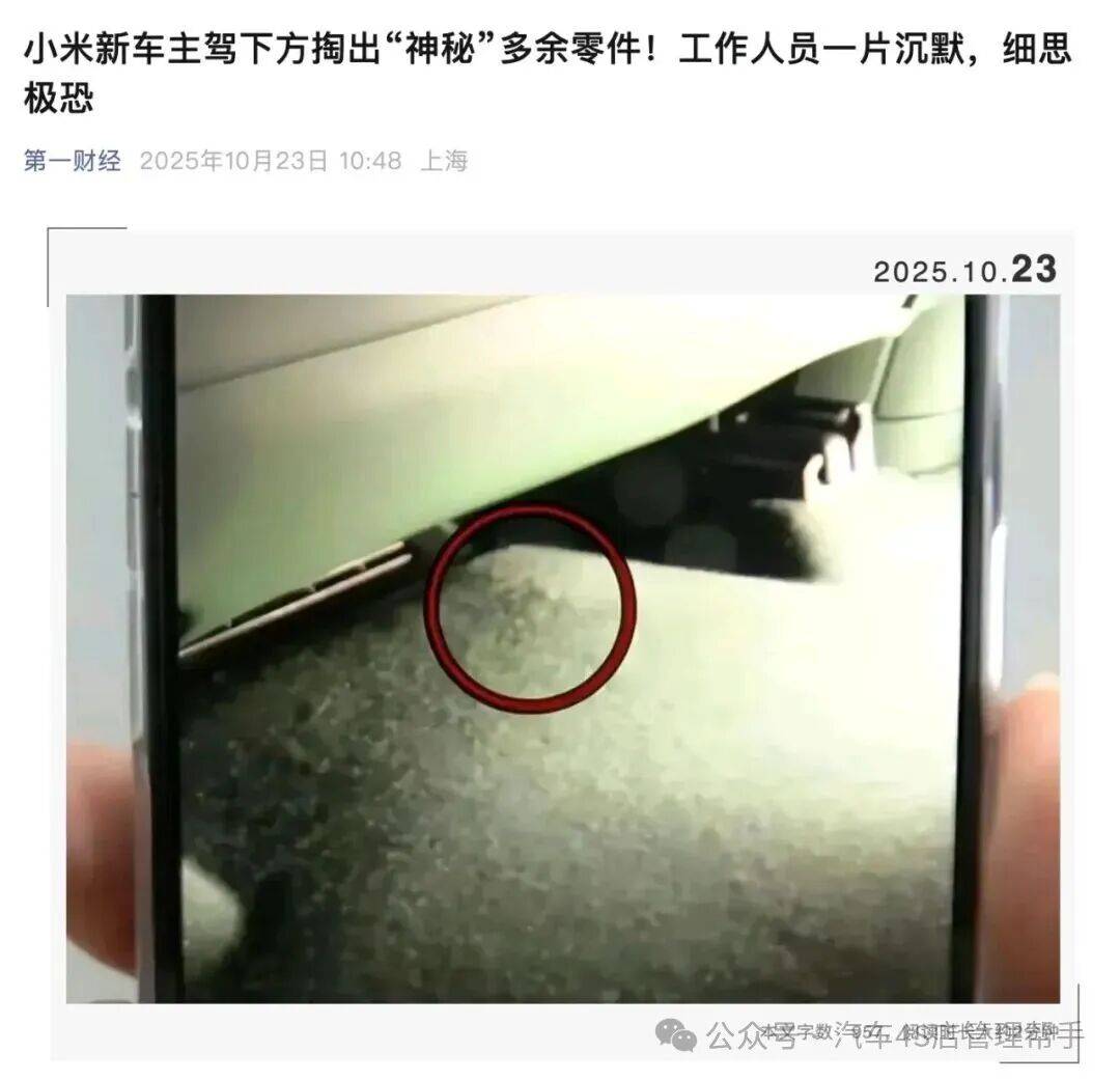 发现故障后,车主立即联系小米汽车金华售后服务中心,明确提出两项诉求:要求出具具有法律效力的检测报告,并详细说明问题成因。然而售后人员仅以"需向上级汇报"为由进行口头安抚,截至目前仍未提供任何书面答复。车主在接受采访时强调:"不需要经济赔偿,只想知道两个核心问题——底盘结构异常是否存在安全隐患?多余零件是如何通过质检流程的?这涉及企业最基本的生产诚信。"