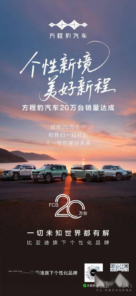 方程豹汽车近日宣布,其累计销量正式突破20万辆大关,成为新能源汽车新势力品牌中增速最快的TOP3之一。数据显示,该品牌平均成交价达到23.88万元,在中高端市场展现出强劲竞争力。