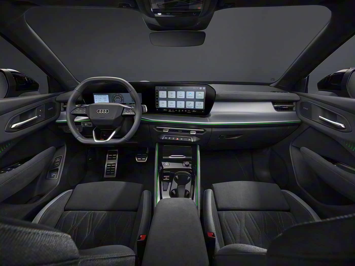 内饰科技感实现跨越式提升。新车预计采用11.9英寸全液晶仪表盘与12.8英寸中控屏组成的曲面双联屏,搭配电子怀挡设计,既强化了驾驶舱的未来感,又优化了中控台储物空间。这种设计语言与奥迪最新家族风格保持一致,在同级竞品中形成差异化优势。