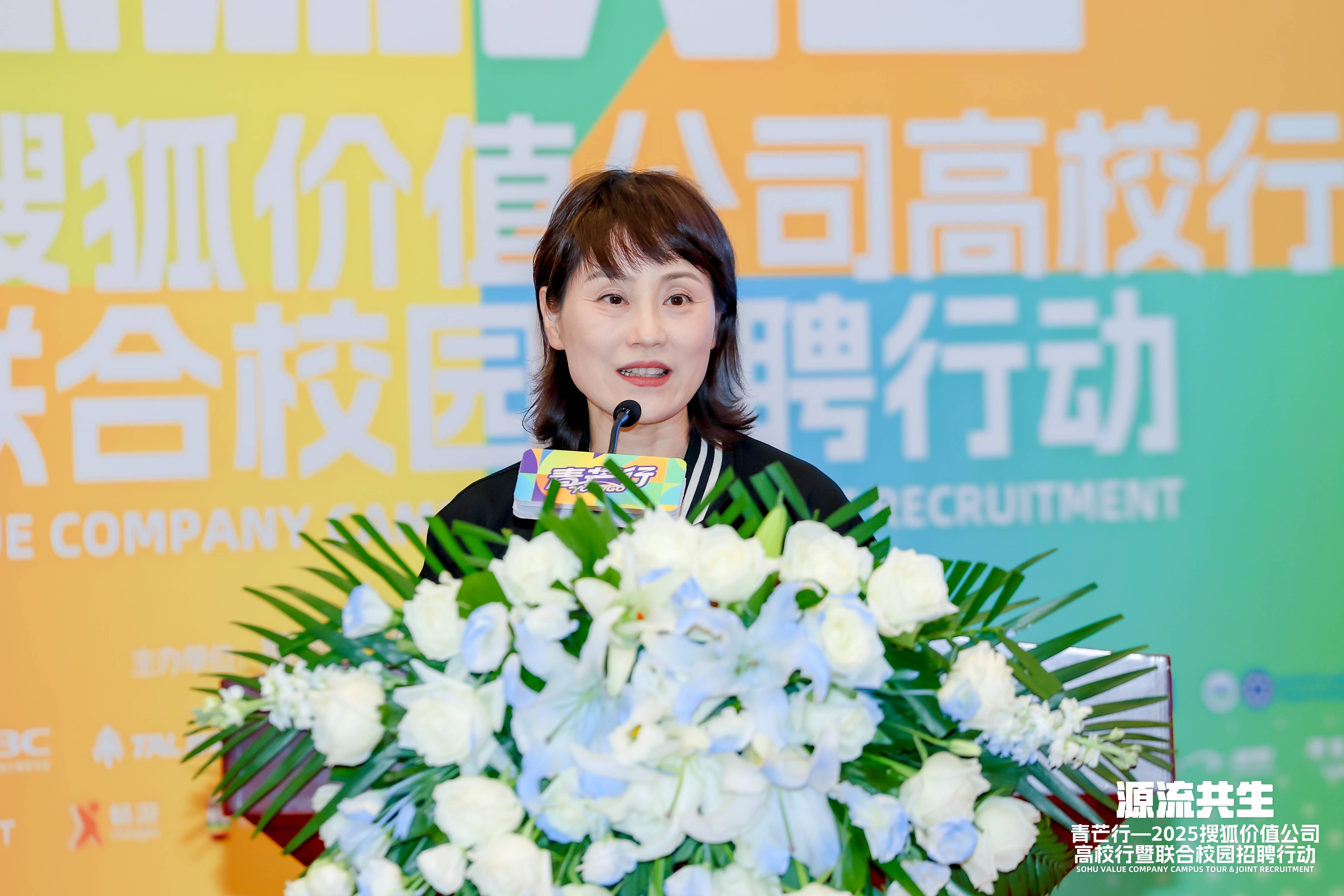 作为活动发起方代表,搜狐公司运营及人力资源副总裁张雪梅在致辞中强调,“青芒行”不仅是一场校园招聘会,更是一个覆盖人才选拔、职业规划、企业互动与文化传播的综合性平台。通过精准匹配岗位需求与学子能力,结合职业成长赋能与企业价值观传递,活动致力于为青年人才提供从就业到创业的一站式支持,助力其实现多维发展。