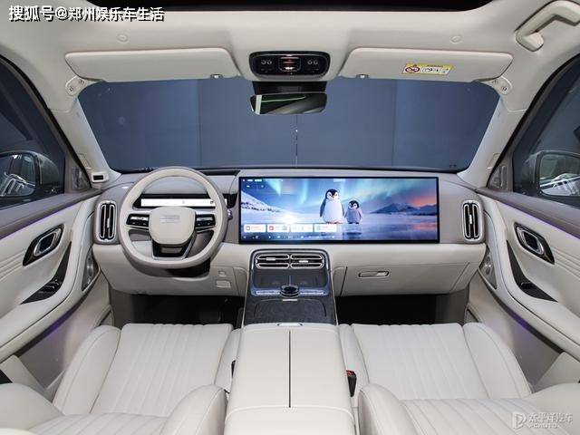 车内空间布局采用2+2+2六座设计,主驾座椅配备16点指压式按摩、主动侧翼支撑及自适应腰托,独享头枕音响系统。二排座椅集成无缝腿托、10点按摩及隐藏式杯托,副驾可向前折叠形成SVIP行政座模式。全车采用11层云感SPA座椅,配备20mm慢回弹海绵层,第三排支持150°躺倒。9.1L冷暖冰箱(-6~50℃)与17.3寸3K吸顶屏的加入,进一步强化了豪华属性。