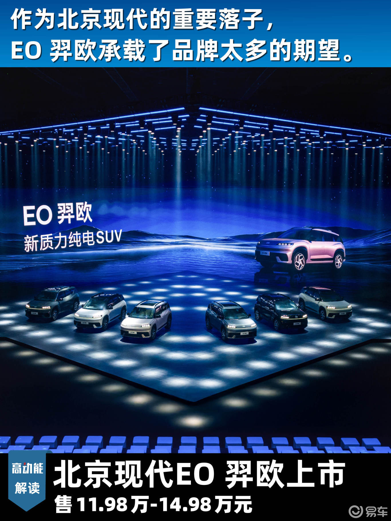 北京现代旗下首款基于E-GMP全球电动车专用平台打造的纯电动紧凑型SUV——EO羿欧近日正式登陆市场。新车共推出3款配置车型,官方指导价区间为11.98万元至14.98万元,同步推出充电桩赠送、0首付购车、4000元置换补贴及终身免费流量等购车权益,强化产品市场竞争力。