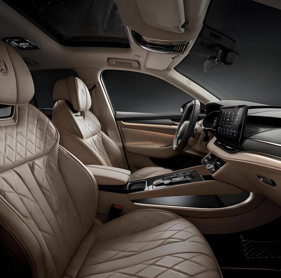 从官方发布的图片来看,新一代速派在设计语言上实现了突破性进化。基于全新平台打造的车身轮廓,与宾利慕尚等超豪华车型形成微妙呼应——流畅的腰线贯穿4.8米以上车长,配合1.9米车宽与2.8米轴距,营造出修长且稳重的视觉效果。细节处,银色金属饰条勾勒车窗轮廓,黑色B柱装饰面板与20英寸多辐式轮毂形成色彩碰撞,配合银色刹车卡钳与侧裙装饰,既保留商务气息又增添运动质感。传统门把手设计搭配无钥匙感应系统,在实用性与仪式感间取得平衡。