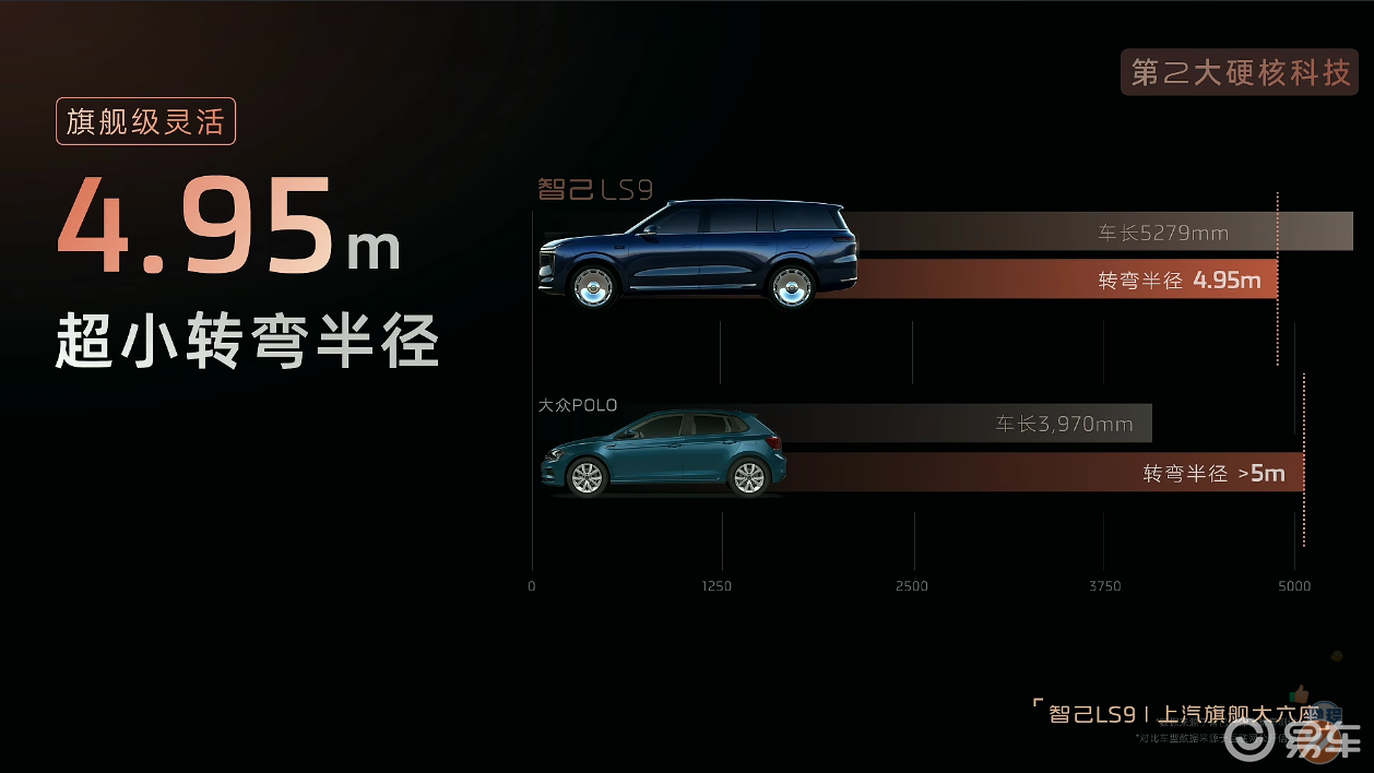针对大车操控难题,智己LS9搭载“灵蜥数字底盘3.0”,后轮随动转向技术让这台近5.3米长的SUV实现仅4.95米的转弯半径,与小型车Polo相当,城市窄路调头、停车更灵活。智能空气悬架支持升降与软硬调节,过弯时有效抑制侧倾,配合“舒享防晕模式”,通过协调动力与悬架系统,显著减轻乘员晕车感。安全配置上,车辆配备爆胎稳定系统与主动防侧翻系统,高强度笼式车身结构与多重车门开启保障设计,进一步提升了被动安全性,电池安全则由宁德时代提供多重防护。
