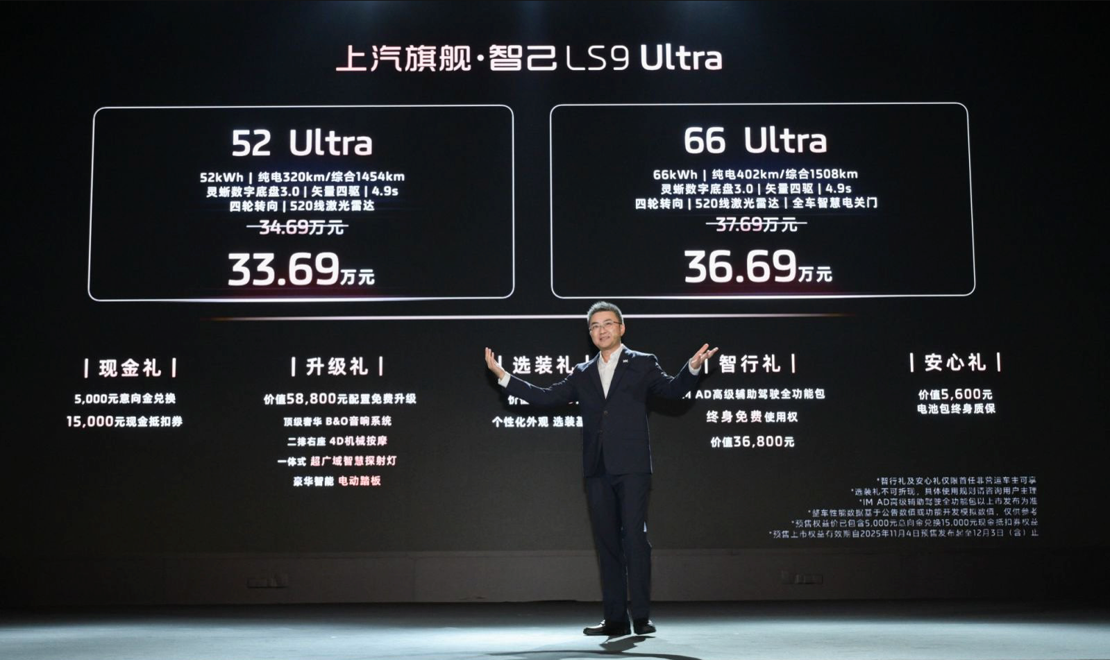 智己汽车旗下全新旗舰SUV——智己LS9近日正式启动预售,此次公布的预售价信息显示,两款Ultra车型分别定价34.69万元和37.69万元,消费者还可通过预售权益享受33.69万元和36.69万元的优惠价格,并获得相关预售权益。