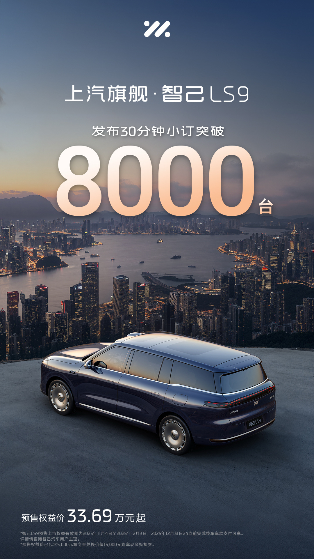 上汽集团旗下高端品牌智己汽车近日正式启动旗舰大六座SUV——智己LS9的预售,新车在开启预订后的半小时内,小订订单量便突破8000台。这一市场表现不仅印证了消费者对智己品牌的认可,更反映出大六座SUV品类仍存在旺盛的市场需求。