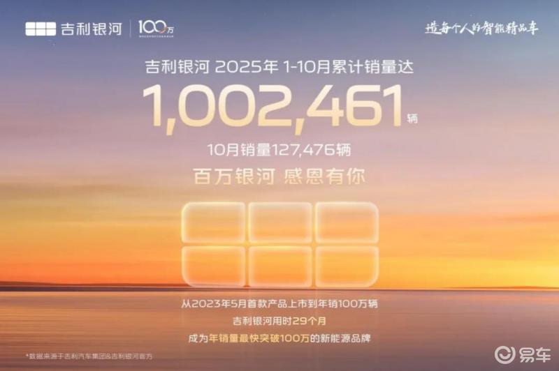 中国新能源汽车市场的竞争格局正迎来深刻变革,而吉利银河的表现成为这一进程中最具代表性的注脚。这家以技术驱动为核心的新能源品牌,不仅在销量规模上实现突破性增长,更通过体系化能力建设重塑行业价值标准。最新数据显示,吉利银河10月单月销量达12.75万辆,同比增长101%,年度累计销量突破百万辆大关,成为全球第三个、中国第二个达成此成就的新能源品牌。