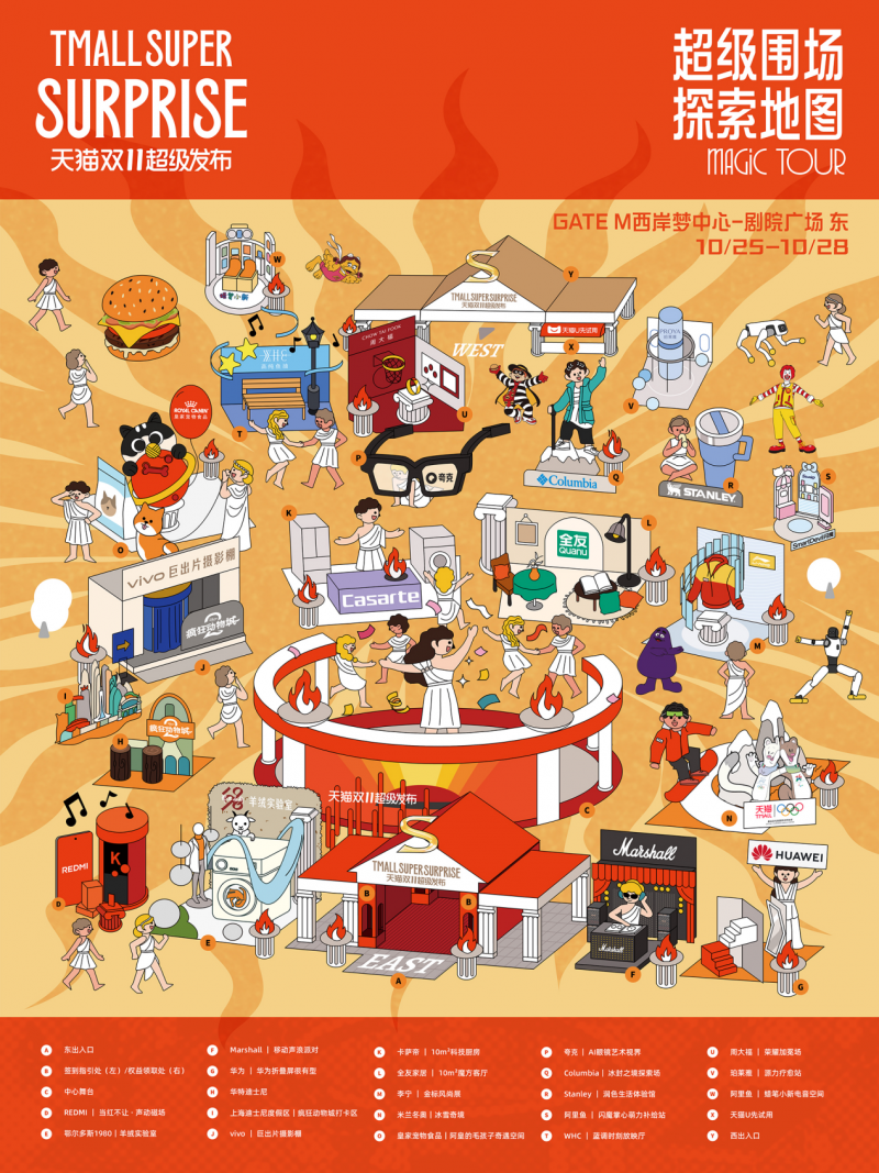 当10月28日的“超级发布之夜大秀”在线上引爆关注时,早在三天前,一场同样精彩的线下体验就已悄然开启。在上海西岸剧院广场,那座以古希腊美学为灵感构建的天猫「超级品牌POP围场」,正以其独特的仪式感,迎接每一位前来探索的消费者。