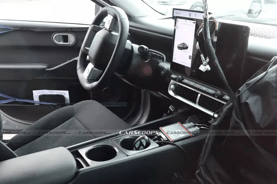 从谍照可见,IONIQ 3内饰采用突破性设计语言。中央悬浮式中控屏尺寸可观,搭载现代最新研发的Pleos Connect智能系统,支持左右分屏显示功能。左侧屏幕专注于车辆状态监测,右侧则负责多媒体交互,这种布局与特斯拉车型形成巧妙呼应。值得关注的是,新车并未完全摒弃传统操作方式——方向盘前方保留了小尺寸液晶仪表盘,同时在中控区域设置了实体启动按钮及常用功能物理按键,这种"科技与实用并存"的设计理念获得网友高度认可,认为有效规避了全触控设计的操作痛点。