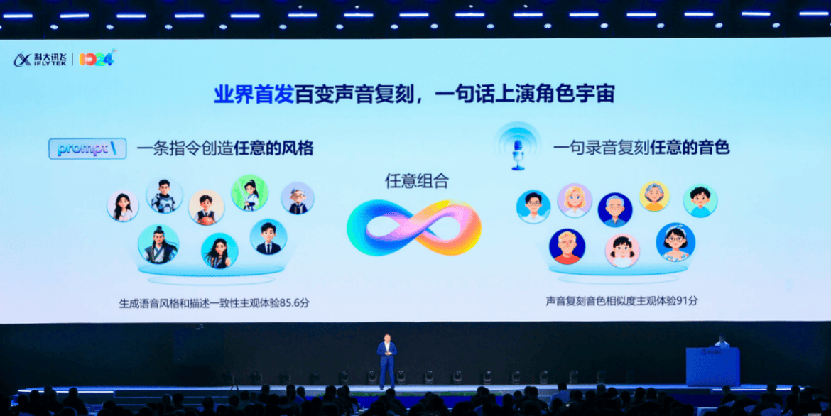 多模态交互能力再升级。数字人导览“小飞”现场演示了八项核心技术突破,包括麦克风远场识别、3D视觉感知、多人主动交互、类人行为反馈、视听觉融合理解、超拟人数字人、个性化记忆及情感语义分析。其中,个性化记忆功能通过构建用户画像库,综合长期偏好、近期反馈与短期对话,实现“千人千面”服务;百变声音复刻技术仅需1秒录音即可复刻任意音色,并支持风格化定制。