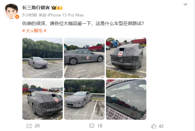 近日,汽车圈因一组神秘路试车型的照片引发关注。微博用户@长三角行健者 率先晒出多张图片,并抛出疑问:“这是什么车型在做路试?”照片中的车辆被伪装覆盖,仅能看出大致轮廓,但独特的车身线条仍引发网友猜测。