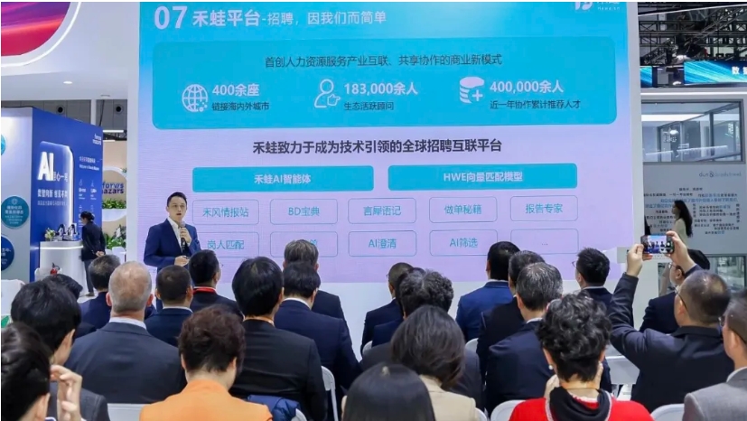 进博会期间,人力资源服务产业互联平台禾蛙受邀参加“HQTP国际人才会客厅”开展剪彩仪式,并与中国上海人力资源服务产业园虹桥园区联合发布新品——“虹桥猎才AI+服务平台”。该产品旨在通过人工智能技术,为区域人才建设提供技术支撑,也为人力资源服务数字化升级注入新动能。