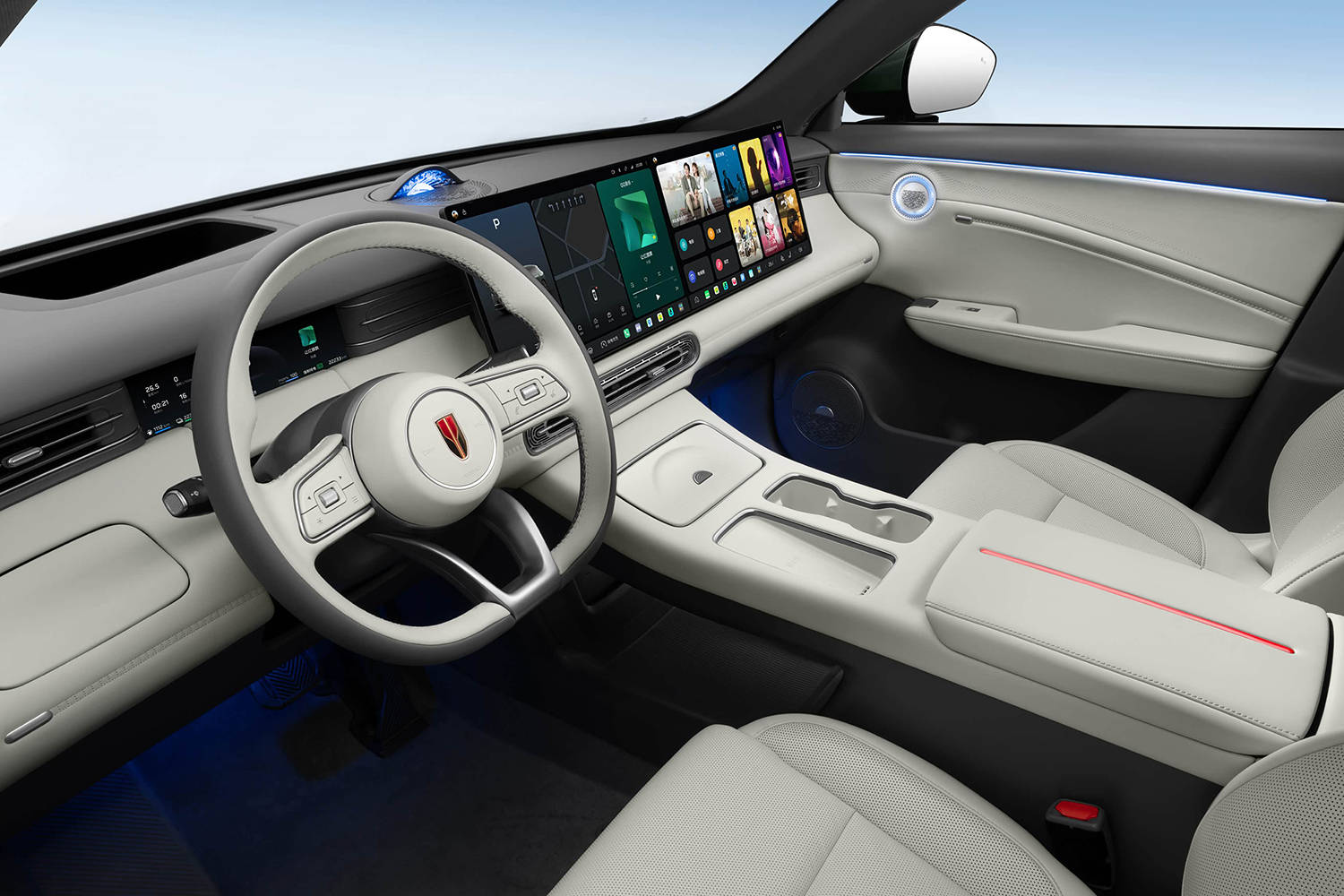 当车辆停下时,其内饰空间展现出另一重惊喜。后排座椅三档加热与吸风功能、智能冷暖车载冰箱、可秒变"双床房"的前排座椅,将功能性与舒适性完美融合。NVH表现尤为突出,90km/h时速下仅存细微胎噪,印证了红旗对品质细节的极致追求。这种超越功能堆砌的设计哲学,在灵犀座舱中体现得淋漓尽致——5nm制程高通8295P芯片确保丝滑交互,4音区语音识别强化专属感,2.5K双联屏与30寸HUD构建沉浸式视觉体验。