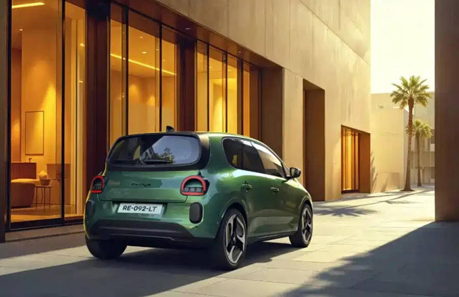 Twingo E-Tech的外观设计灵感源自1993年推出的初代Twingo,通过前大灯、格栅轮廓和前舱盖通风口等细节向经典致敬。其中,半圆形大灯成为视觉焦点,为整车增添了俏皮灵动的气质。车身侧面延续单厢式结构,整体造型宛如“能量气泡”,传统门把手与运动感轮圈形成对比。车尾的半圆形LED尾灯与车头呼应,突出的后玻璃设计进一步强化了法系车独特的前卫风格。新车尺寸为长3790mm、宽1720mm、高1490mm,轴距2490mm,后备厢容积达360L。