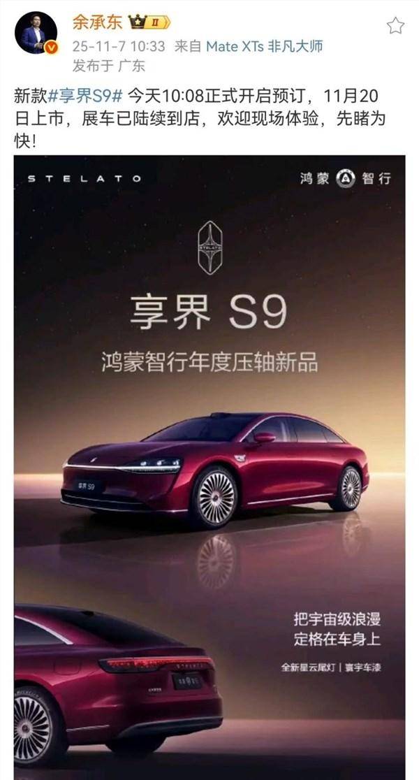 据官方信息,新车将于11月20日正式上市销售。作为享界品牌旗舰车型,S9将与现款S9T形成产品矩阵,覆盖30-50万元豪华轿车市场。此次升级在保持原有价格优势的基础上,通过智能化配置与动力系统的全面革新,进一步强化了产品竞争力,有望在高端新能源市场引发新一轮竞争格局变化。