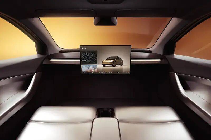 内饰布局彻底颠覆传统驾驶舱概念。马斯克确认,该车型将取消方向盘、加速踏板及制动踏板,全面依赖特斯拉完全自动驾驶系统(FSD)。车内采用一体化座椅设计,靠背与坐垫形成分段式结构,中央配备可折叠扶手及悬浮式中控屏幕。空间设计强调多功能性,后排座椅支持折叠以扩展储物空间。