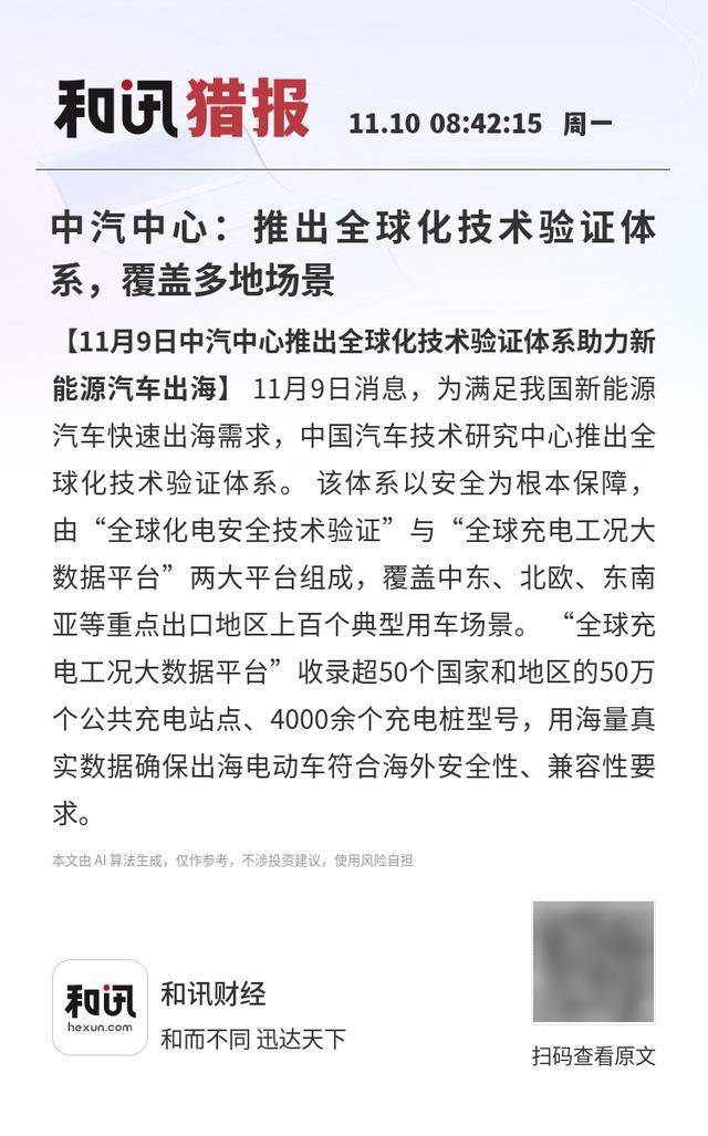 据悉,该体系的建立旨在解决中国新能源汽车在海外市场的“水土不服”问题。通过真实场景的模拟验证和大数据分析,车企可以提前规避技术风险,缩短产品适配周期,从而提升中国新能源汽车在国际市场的竞争力。