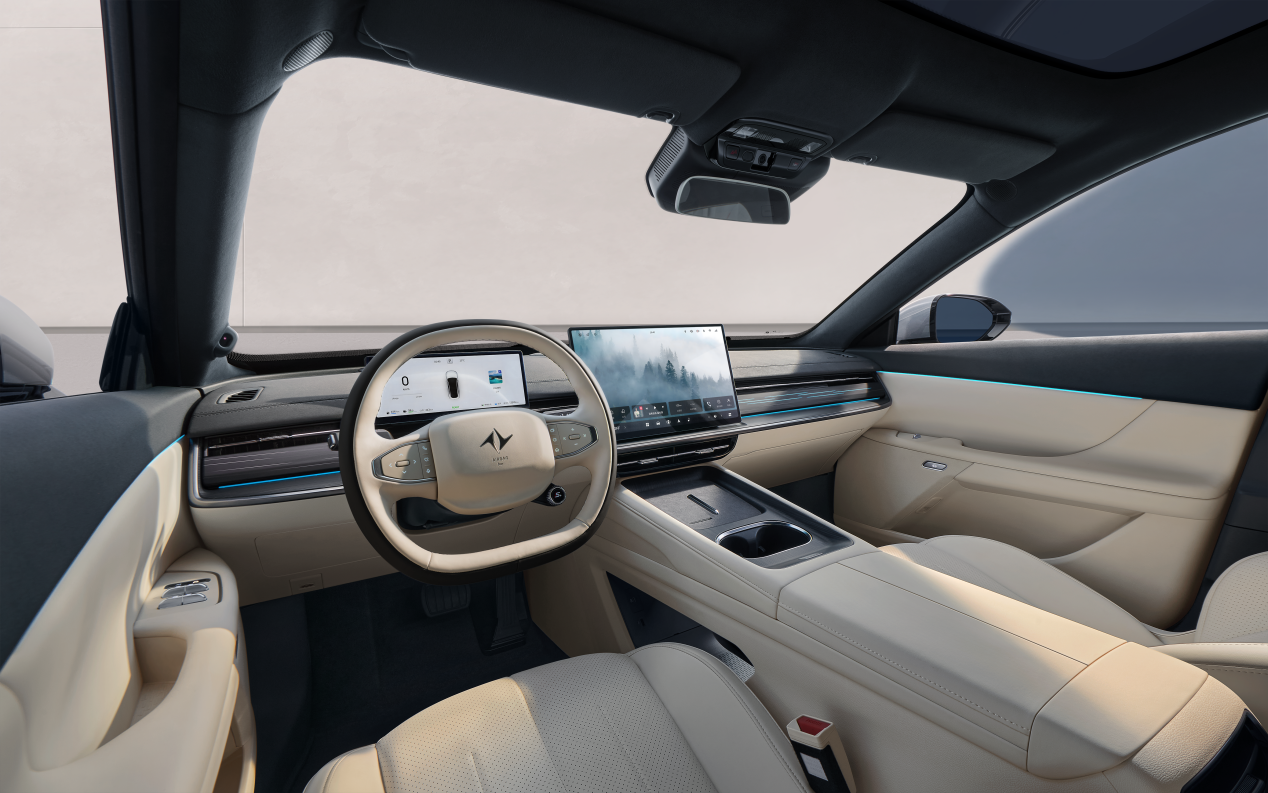 科技配置上,eπ007+以超能智慧为核心竞争力。全系标配的高通骁龙SA8295P芯片,凭借230KDMIPS算力的CPU、3TFLOPS算力的GPU与24TOPS算力的NPU,相比8155平台实现数倍性能提升,5nm工艺制程让能效比优化30%。15.6英寸超清中控智慧屏与10.25英寸组合仪表屏的搭配,带来清晰直观的操作体验。300万像素360全景影像采用品字型页面结构,俯视图、单视图与轮毂视图同屏显示,转向、窄路等场景下可语音交互且不打断原有操作。车内生物监测系统OMS涵盖乘员监测、生物遗留监测、智能手势控制等功能,无感进入、一键启动与钥匙分享功能则让用车更便捷。