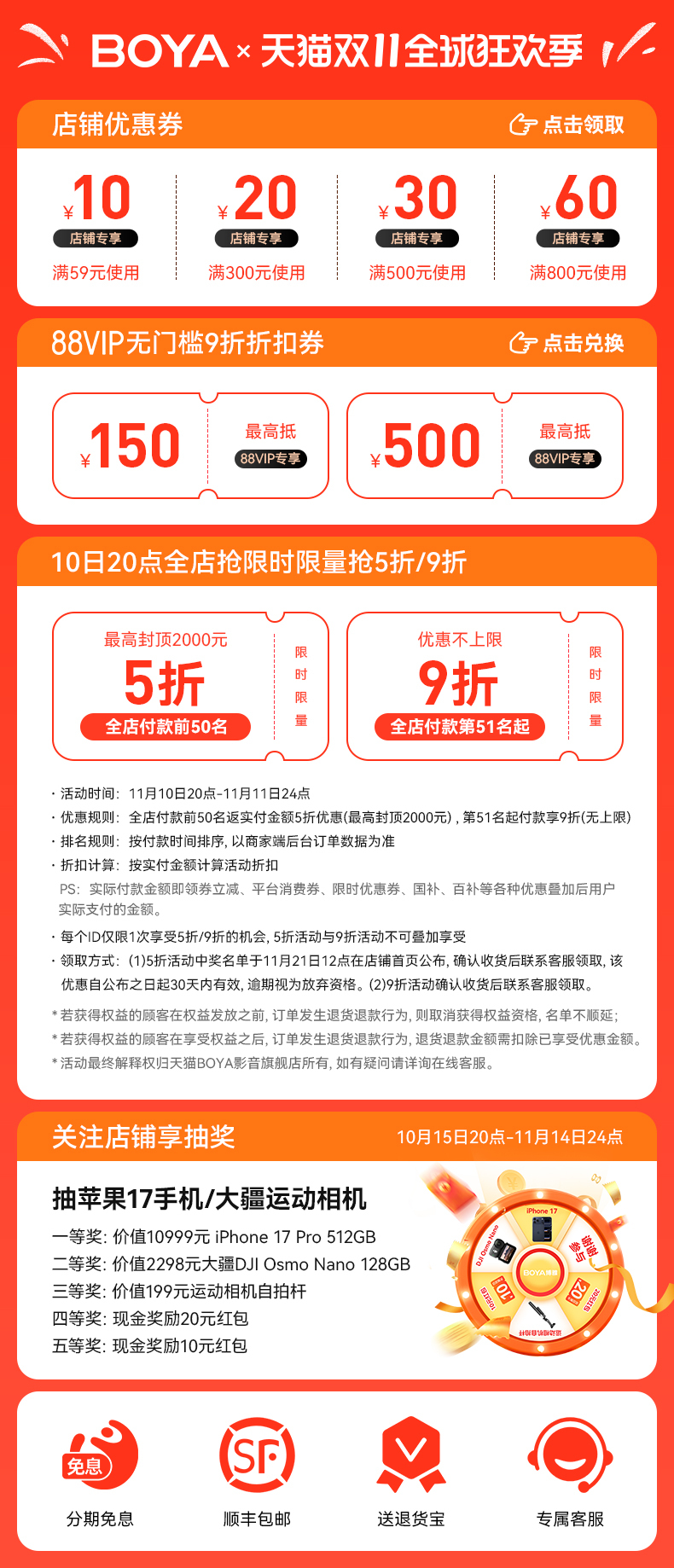 关注【BOYA影音旗舰店】,更多双十一特惠先到先得!