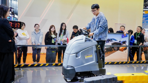 展会期间,德国卡赫精心设置了多个趣味十足的互动体验活动,而经典的“极速前净”挑战赛活动今年更加码升级,到场观众可在规定时间内驾驶明星产品站立式洗地吸干机完成挑战,直观感受产品的卓越清洁能力和灵活操控体验。