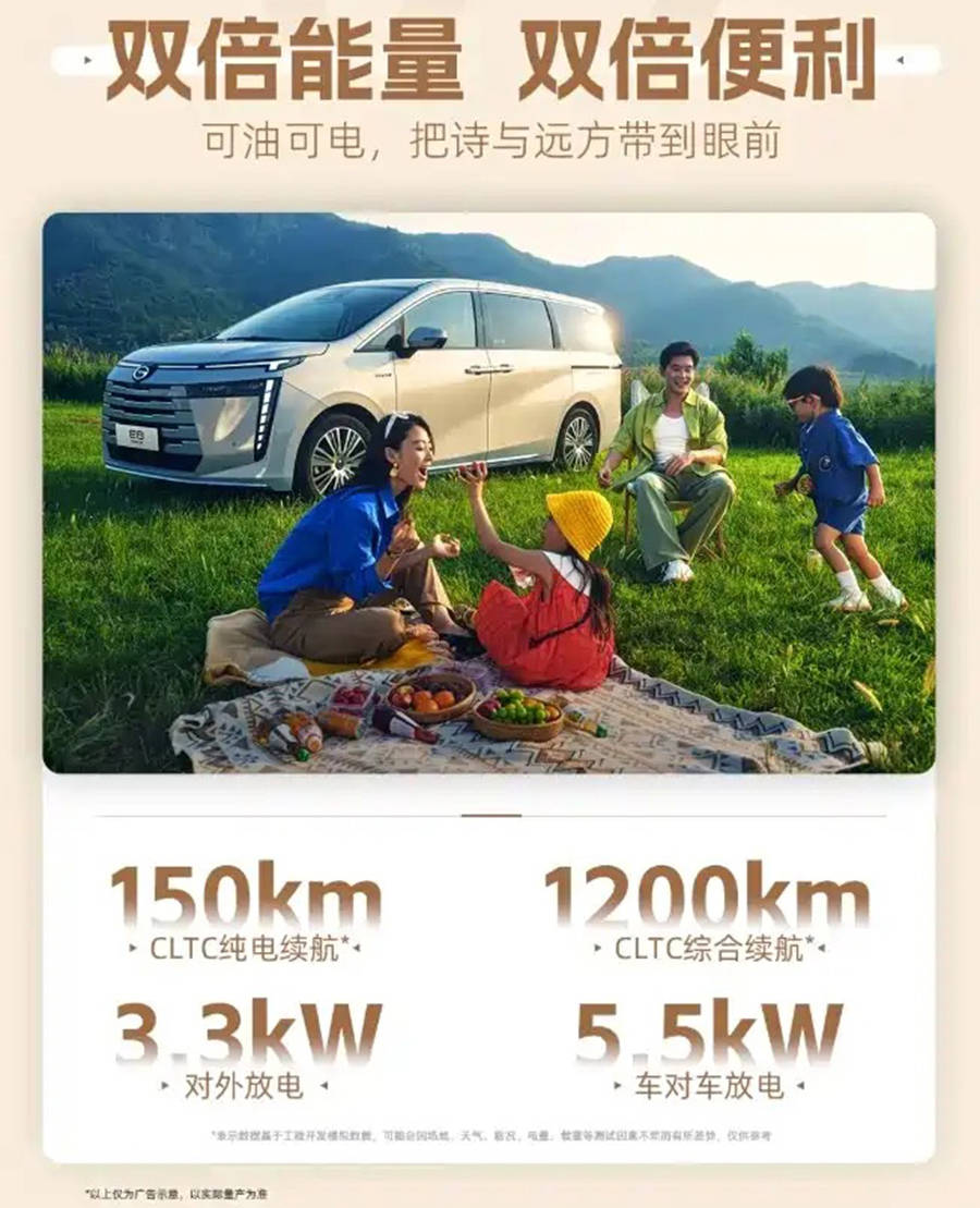 作为一款中型MPV,传祺E8全运版在车身尺寸上也颇具竞争力。其长宽高分别为4920mm、1900mm和1760mm,轴距则达到了2930mm,为乘客提供了宽敞舒适的乘坐环境。动力方面,新车搭载了高效的混合动力系统,CLTC纯电续航里程可达150km,而综合续航里程更是高达1200km,满足了长途旅行的需求。同时,发动机最大功率为103千瓦,电机最大功率则为134千瓦,动力表现强劲而平顺。