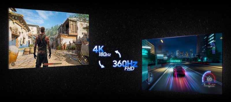 当玩家追求极致画质时,4K分辨率配合Fast IPS技术能够呈现震撼的视觉效果,178°宽广视角确保任意角度都能看到清晰明快的色彩,无论是欣赏游戏剧情的细腻画面,还是观察团战中的技能特效,都能获得沉浸式体验;当进入高强度竞技模式时,切换至FHD 360Hz超高刷新率模式,配合1ms GTG响应时间与AMD FreeSync Premium技术,减少动作模糊和重影现象,大幅提升操作精准度。