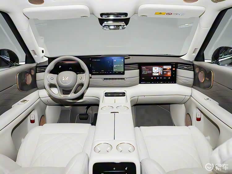 车内空间布局堪称豪华配置的集大成者。前排配备27.1英寸双联屏,副驾搭载15.6英寸娱乐屏,后排更设有21.5英寸吸顶屏,形成全场景智能交互系统。座椅采用3零重力布局(前排+二排),搭配B&O品牌25扬声器音响与12.3L车载冰箱,将舒适性与功能性提升至新高度。方向盘提供半辐/全辐两种造型选择,满足个性化驾驶需求。