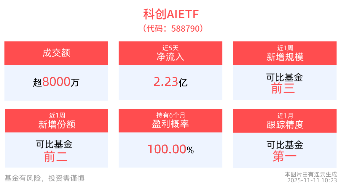 规模增长数据同样亮眼,近一周基金规模增加2994.99万元,在十只可比基金中排名第三;份额增长1.77亿份,位居第二。数据显示,截至10月31日,上证科创板人工智能指数前十大权重股合计占比70.92%,包含澜起科技、金山办公、寒武纪等科技企业,该指数通过选取科创板市场中30只市值较大的人工智能产业链上市公司,反映板块整体表现。