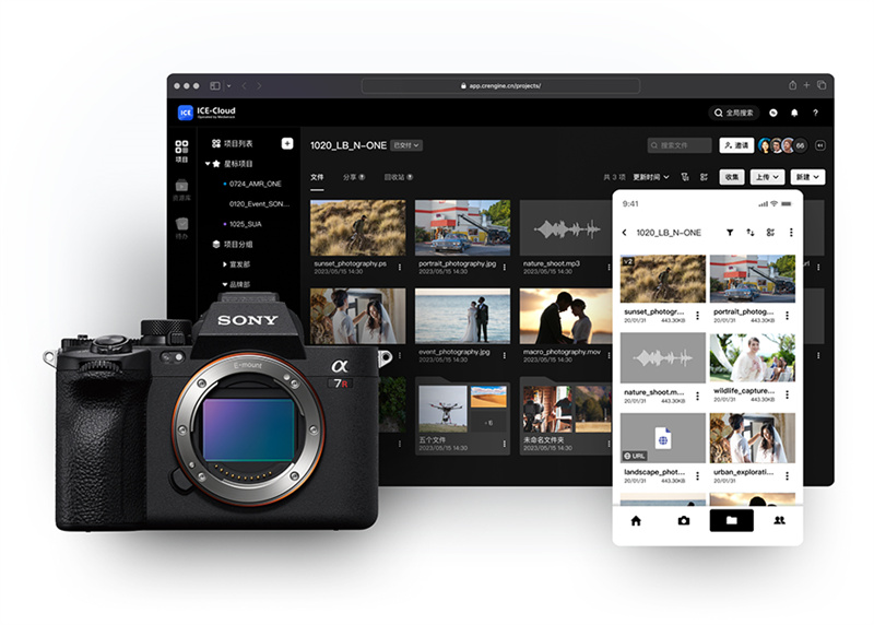 ICE-Cloud集拍摄上云、媒资管理、在线审阅、项目和流程管理功能于一体,构建了一个统一、高效、安全的协同工作空间,用户可以将索尼相机拍摄的影像自动或手动上传至云端,摆脱对物理存储设备的依赖,让身处异地的团队成员即时预览和调用素材,并在云端实现高效协同创作,让流程更加丝滑。