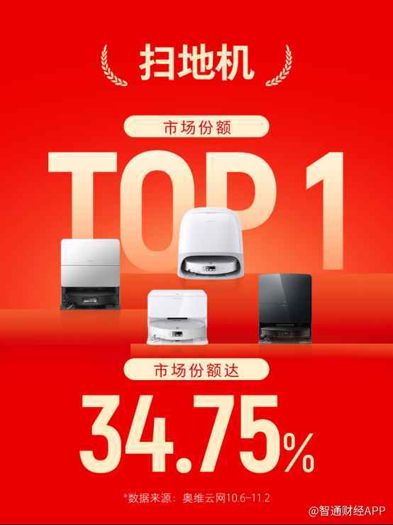 在刚刚落幕的双十一购物狂欢中,石头科技凭借多品类协同发力,交出了一份令人瞩目的成绩单。其扫地机以34.75%的市场份额稳居全网第一,洗地机以25.02%的份额紧随其后,吸尘器净销售额同比增长近23倍,洗烘一体机等洗护产品也展现出强劲的市场竞争力,标志着这家清洁电器企业正从单一品类向全场景解决方案提供商加速转型。