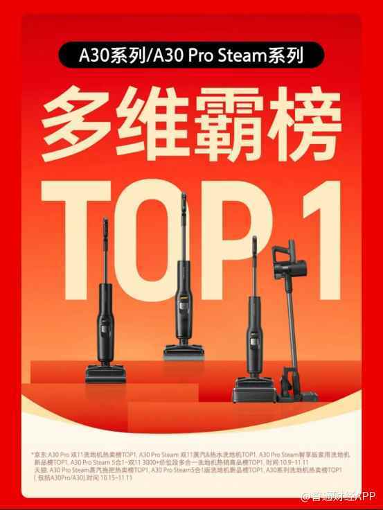 洗地机业务则成为拉动增长的新引擎。双十一期间,其市场份额达25.02%,净销售额同比激增408.52%。旗舰系列A30/A30 Pro Steam在京东、天猫等平台包揽多个细分品类冠军,其中A30 Pro Steam因集成160°C蒸汽除菌、25000Pa大吸力、加压研磨顽固污渍等核心技术,被业界誉为“顶配机皇”。开源证券分析指出,组织架构调整后,石头科技通过完善价格带布局、强化产品差异化、拓展销售渠道及加大品牌投入,成功将扫地机领域积累的品牌势能与清洁技术复用至洗地机赛道,实现高质量增长。