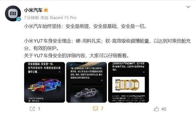 雷军在个人社交平台强调,安全始终是小米汽车研发的核心指标。目前团队正在推进新一代压铸技术攻关,未来将应用更高强度的铝合金材料,并探索更多部件的一体化成型方案。这种技术路线不仅符合汽车行业轻量化发展趋势,更为智能电动汽车的被动安全体系树立了新标杆。