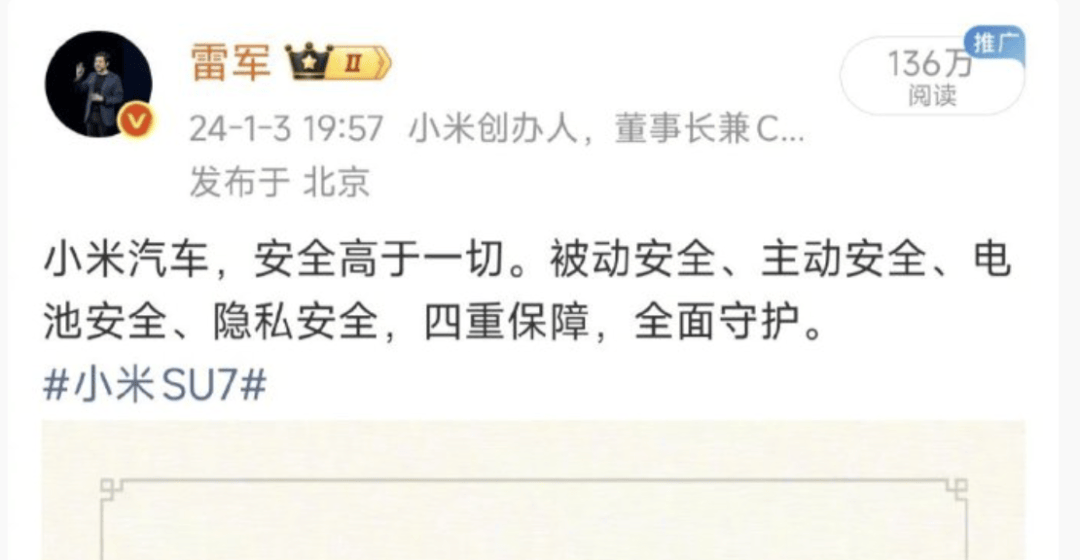 根据雷军公布的截图内容,早在2023年12月,他便多次强调小米汽车的安全标准。例如,在12月28日的动态中,他提到小米SU7采用钢铝混合车身,高强度钢与铝材占比超过90%,其中最高强度达2000MPa;同日另一条动态中,他指出电池作为电动车核心部件,小米同样以严苛标准进行设计。2024年1月,他进一步补充称,小米汽车的安全体系涵盖被动安全、主动安全、电池安全及隐私安全四大维度,并按照C-NCAP 2024版、E-NCAP 2023版及C-IASI 2023版三大权威标准进行研发,目标均为五星或3G+优秀评级。